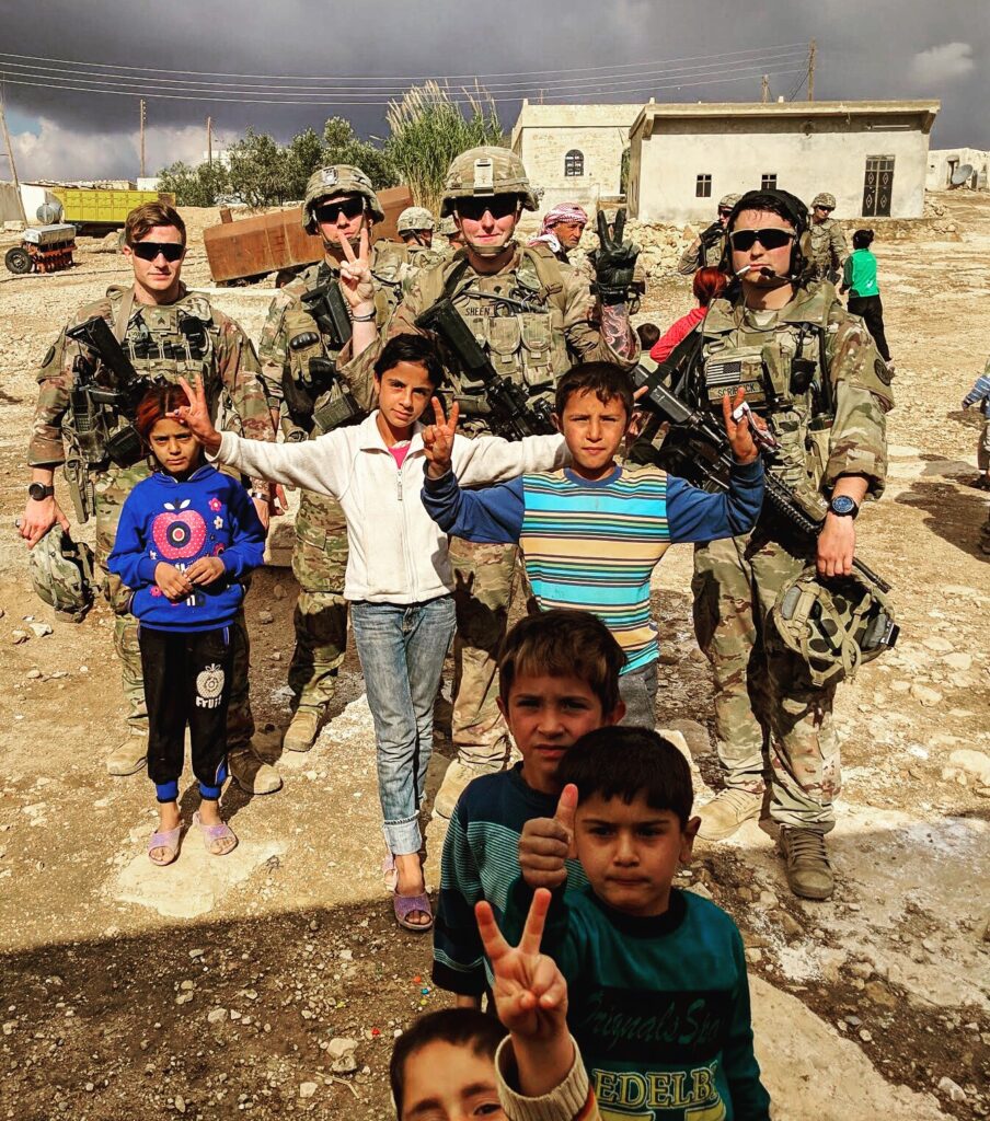 In September, we had a change of mission and went to Syria, which was much different than Iraq. At that point, the United States was assisting the SDF, which is the Syrian Democratic Forces, to defeat ISIS in Syria. We did local patrols and we would go to cities and meet with the local village leaders. I enjoyed every minute of it; the Kurds were the nicest people to us. In one village, the Kurds were trying to establish a school, so we would bring pencils, pens and notebooks and they were always incredibly grateful.