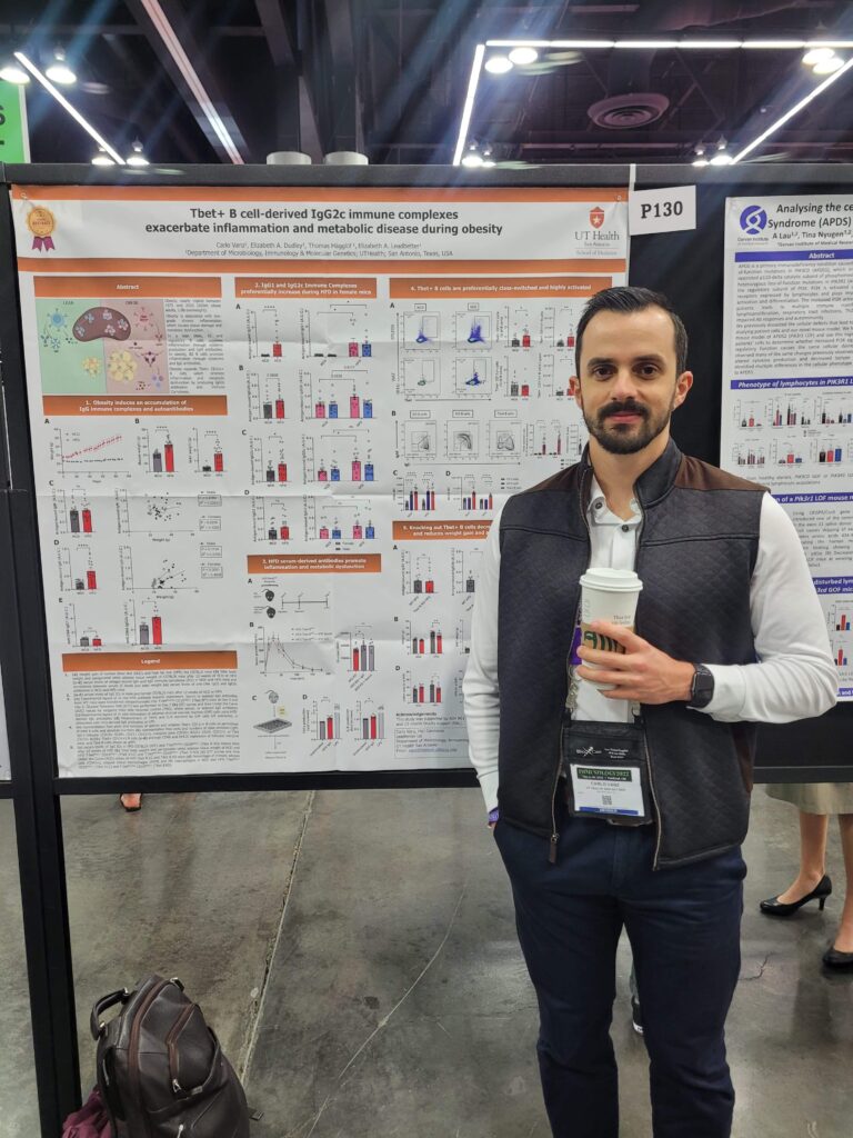 The Ph.D program here is structured such that during the first two years you take several classes to train as a researcher, but after that, almost all of your time is spent doing research in the lab. I am now in my third year working in Dr. Elizabeth Leadbetter’s lab, and I couldn’t have asked for a better mentor and lab. Dr. Leadbetter has provided me with amazing mentorship and support to help guide me through my research, while also giving me enough freedom to manage my work. My research focuses on the relationship between the immune system and metabolism in obesity using a mouse model. In particular, we are investigating the role of B cells and how they relate to chronic inflammatory states, such as those observed in obesity. The long-term goal is to find new ways to treat or even prevent the development of inflammation in obese patients, thus blocking its downstream effects in promoting conditions such as type 2 diabetes, a disease that affects thousands of people in San Antonio and across the country. These sorts of projects are by their nature very narrowly focused, but one thing I have learned as a researcher is that regardless of how niche your project is, you’ll learn to love it, provided you are in a supportive environment. Of course, the huge potential for this knowledge to change lives for the better also helps tremendously.