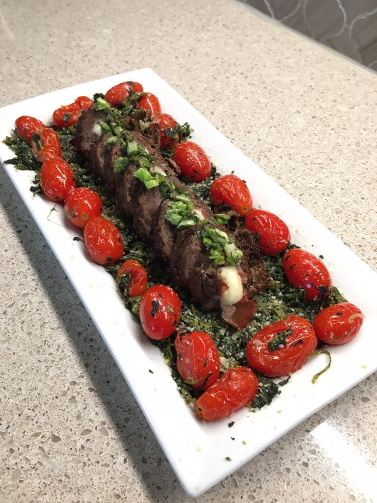 Beef Saltimocca with Sauted Spinach (right)
