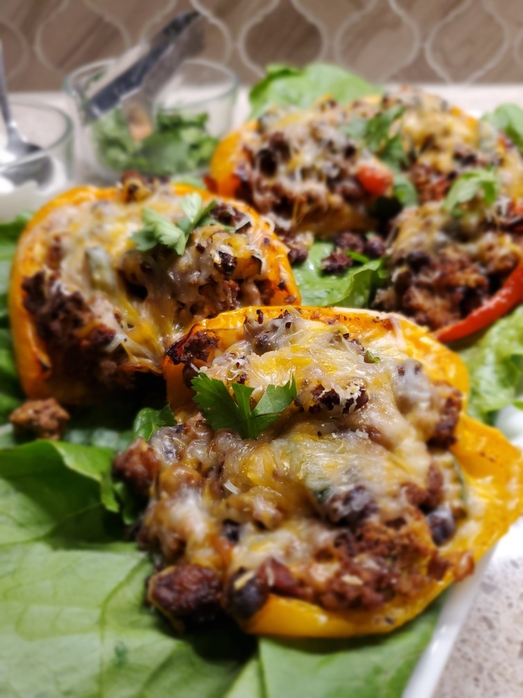 Mexican Beef & Veggie Stuffed Peppers (left)